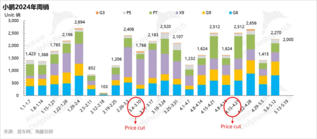 目前主力车型G6面临比亚迪新款宋L的竞争,P7也面临着新款极氪001/极氪007以及小米SU7的压力,订单和销量都表现疲软,小鹏也迫于销量和订单下滑的压力开启了降价。