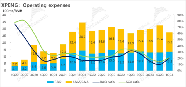 4)费用下行了:小鹏的研发费用还是在比较刚性的状态,但是公司之前已充分沟通过2024年还会提高研发费用,实际并未明显增加,但应该一季度销量太差,小鹏研发费用并未大提。
