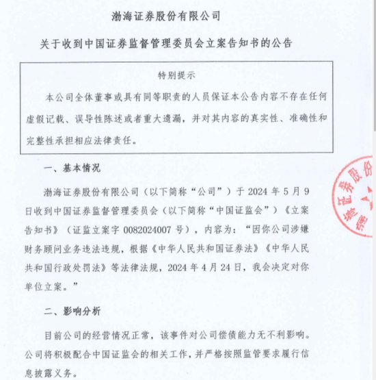 配资交易系统 渤海证券 被证监会立案